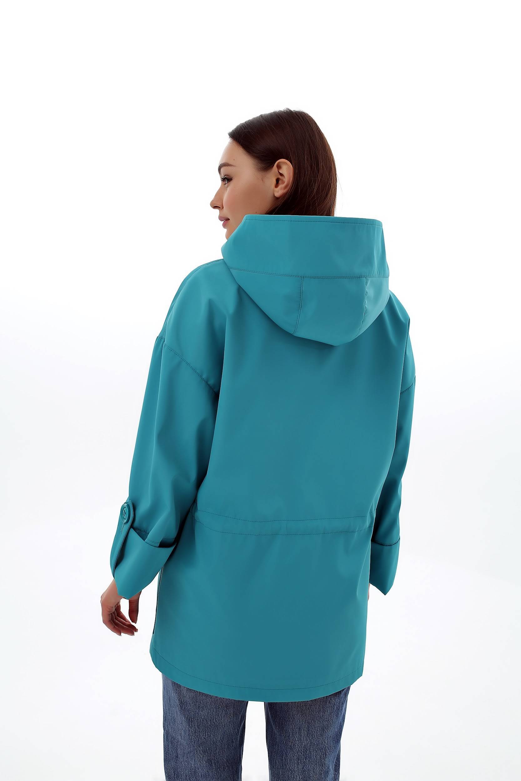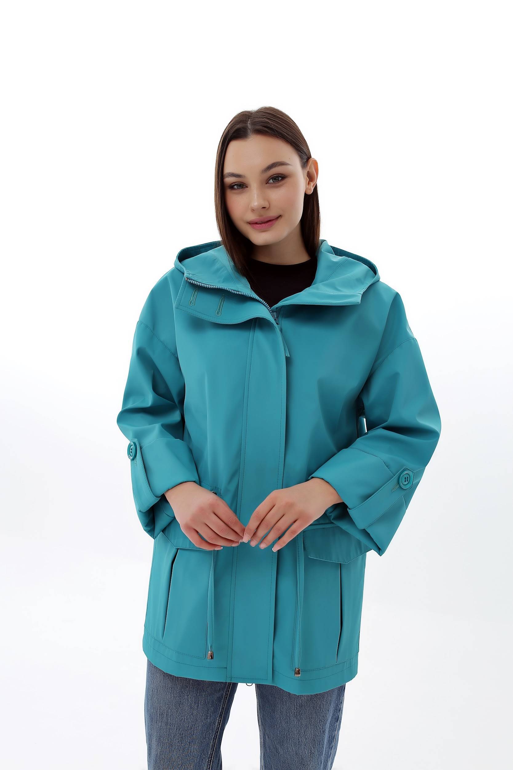 Куртка женская весенняя, выполненная из плащевой ткани, на подкладке нейлон. Имеет несъемный капюшон, накладные карманы с клапаном. По линии талии кулиска. Рукав втачной, с широким отворотом, который крепится с помощью хлястика и декоративной пуговицы .