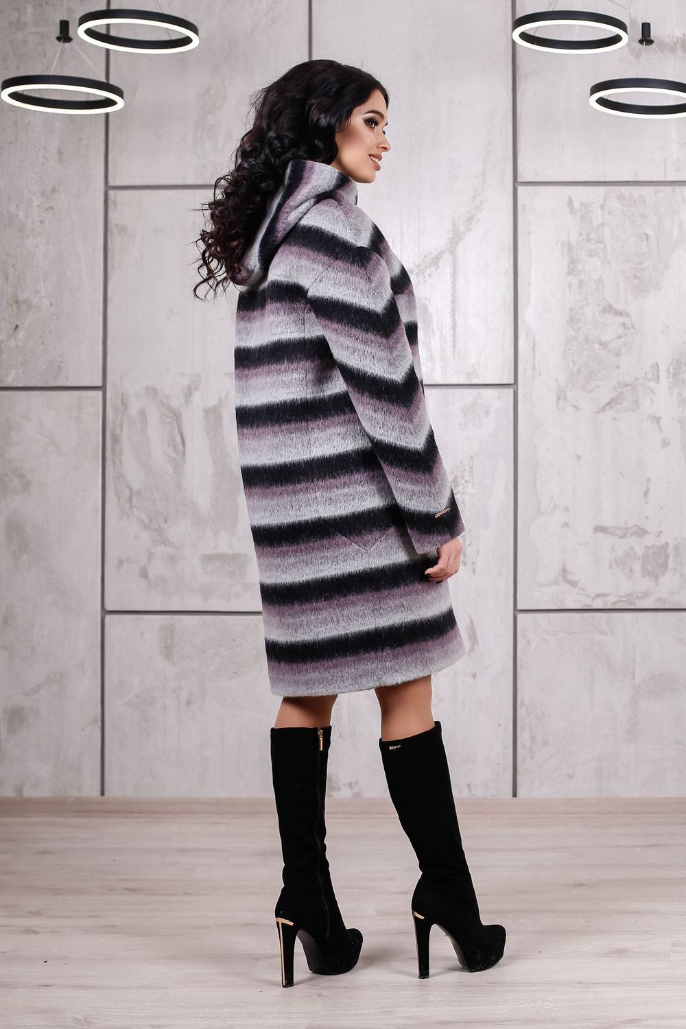 Пальто женское демисезонное, выполненное из итальянской шерстяной ворсовой пальтовой ткани прямого силуэта с цельнокроеными рукавами. Изделие без воротника, капюшон съемный, пристегивается на пуговицы и петли.
